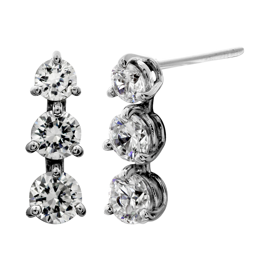Three stone dangle earrings with the stud