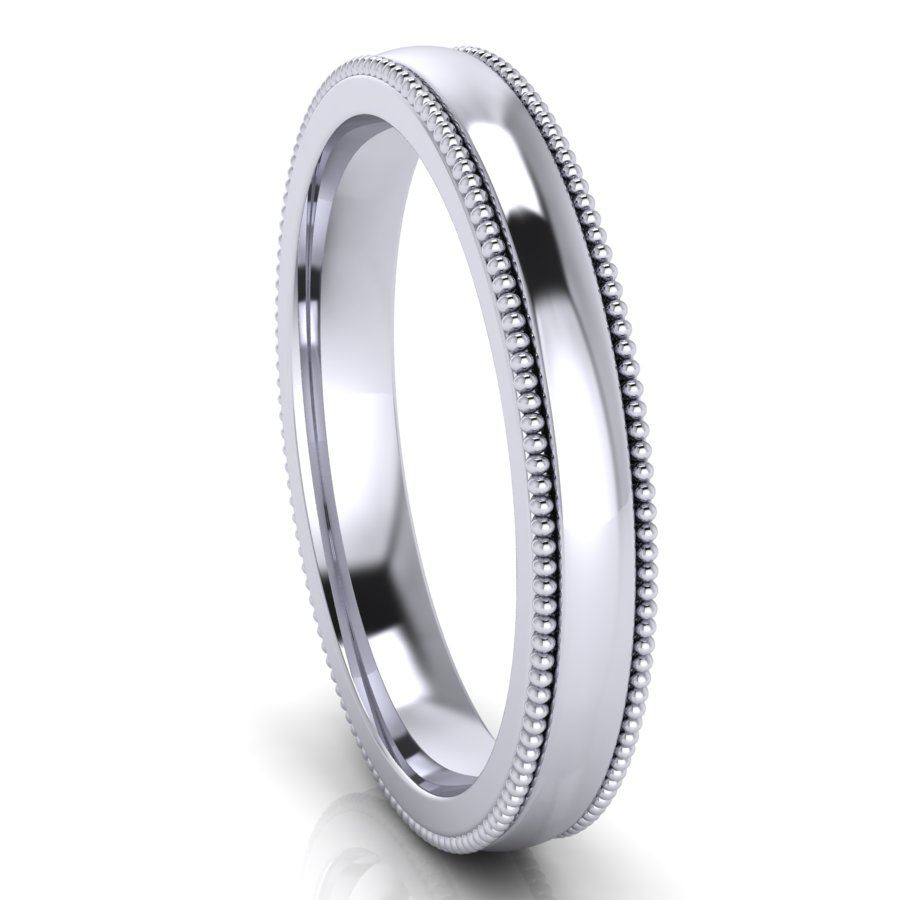 3.0mm Platinum Half Round Comfort Fit Band With Milgrain