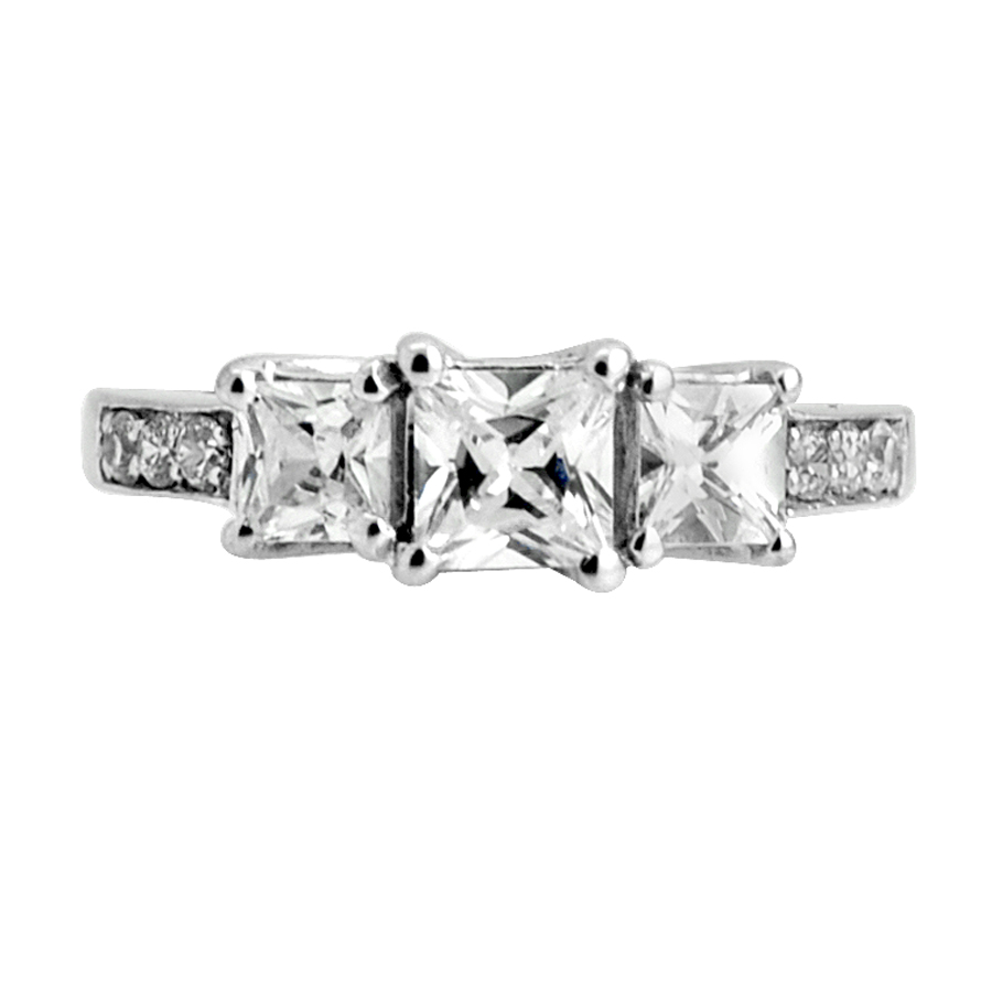 Trellis three stone ring pave set square stones