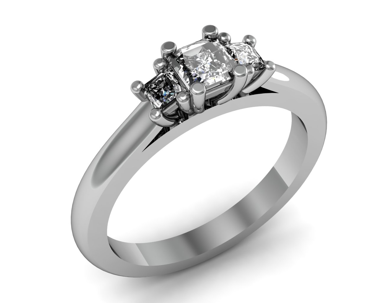 Three stone ring princess cut stones basket style