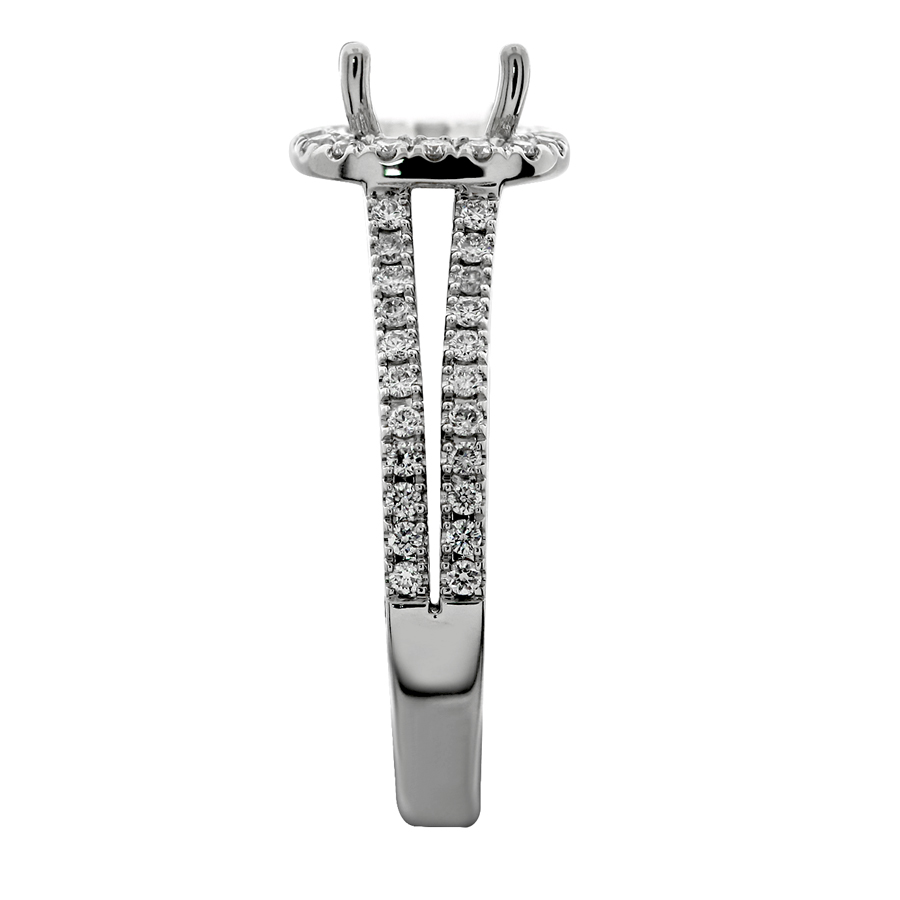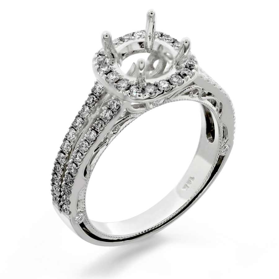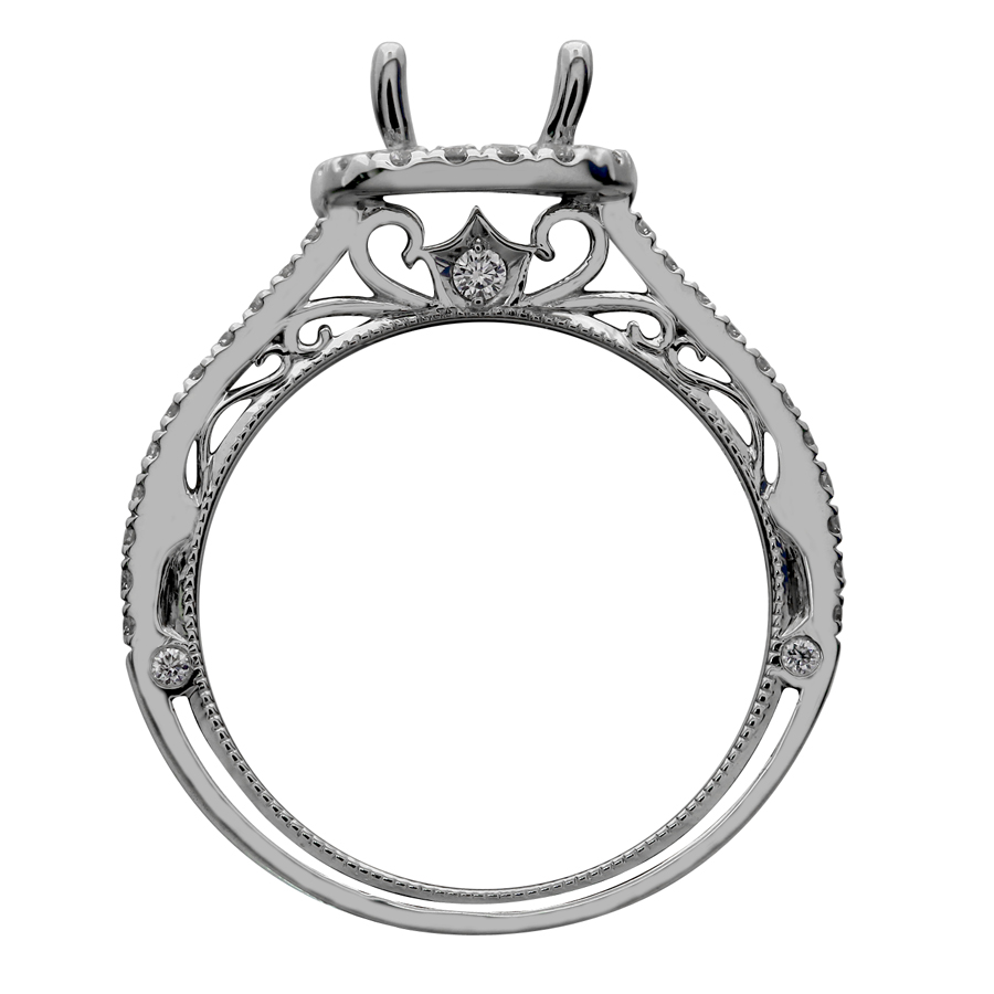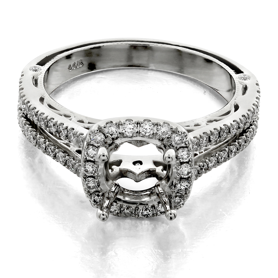 Cushion outline halo split shank with filigree
