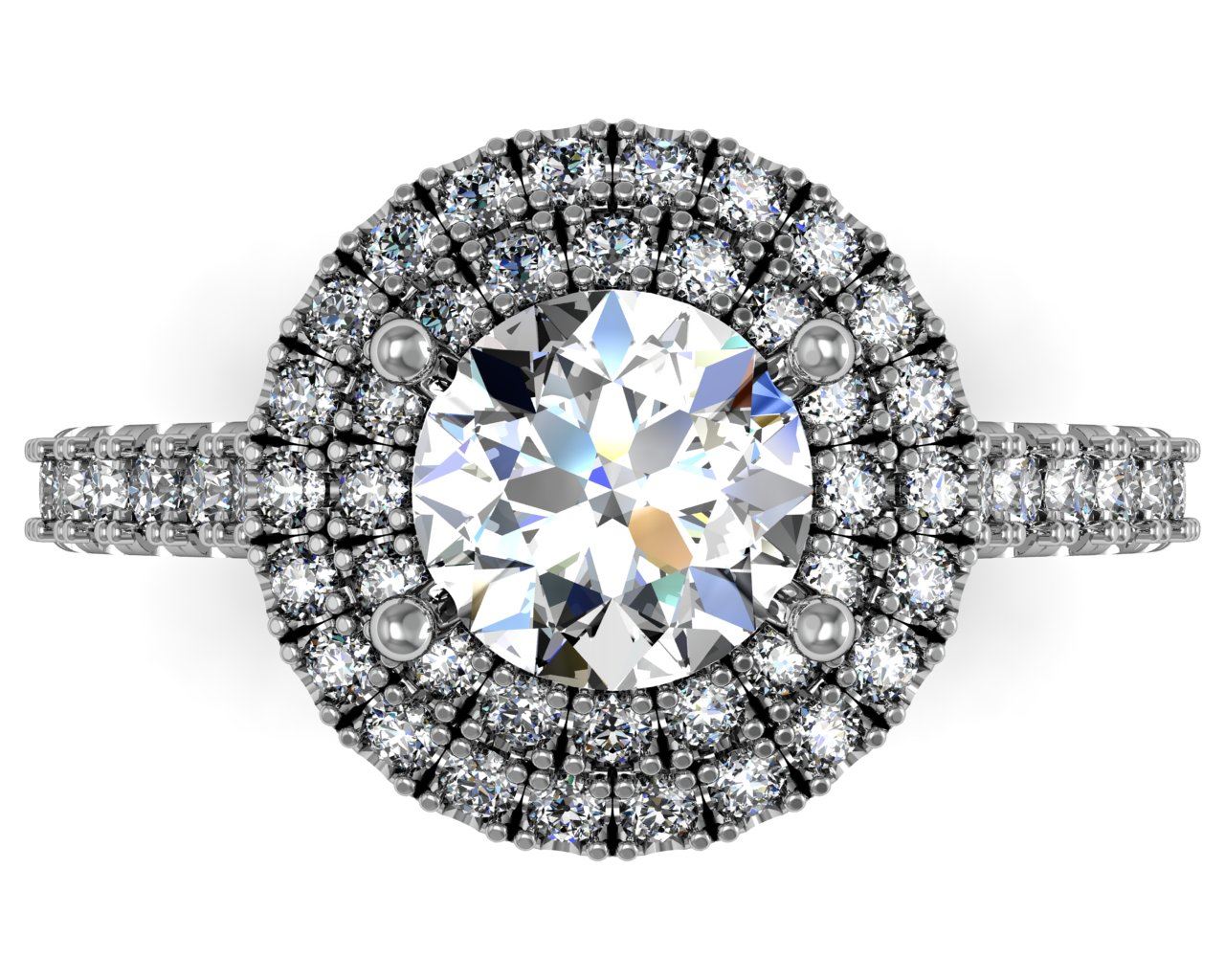 Two row halo split prong set round center