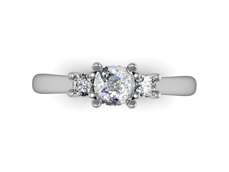 Three stone ring cushion center round side stones