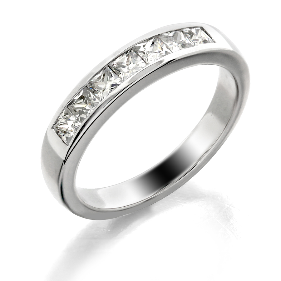 Channel set band princess cut stones