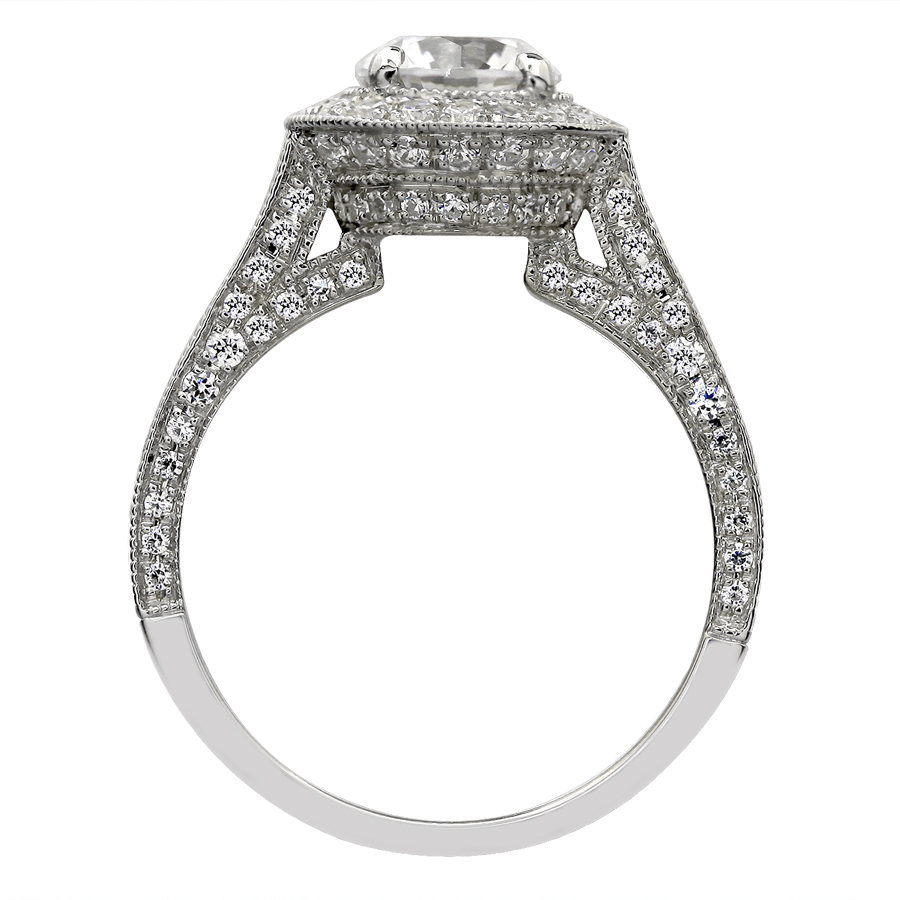 Three row halo square outline with filigree on the head
