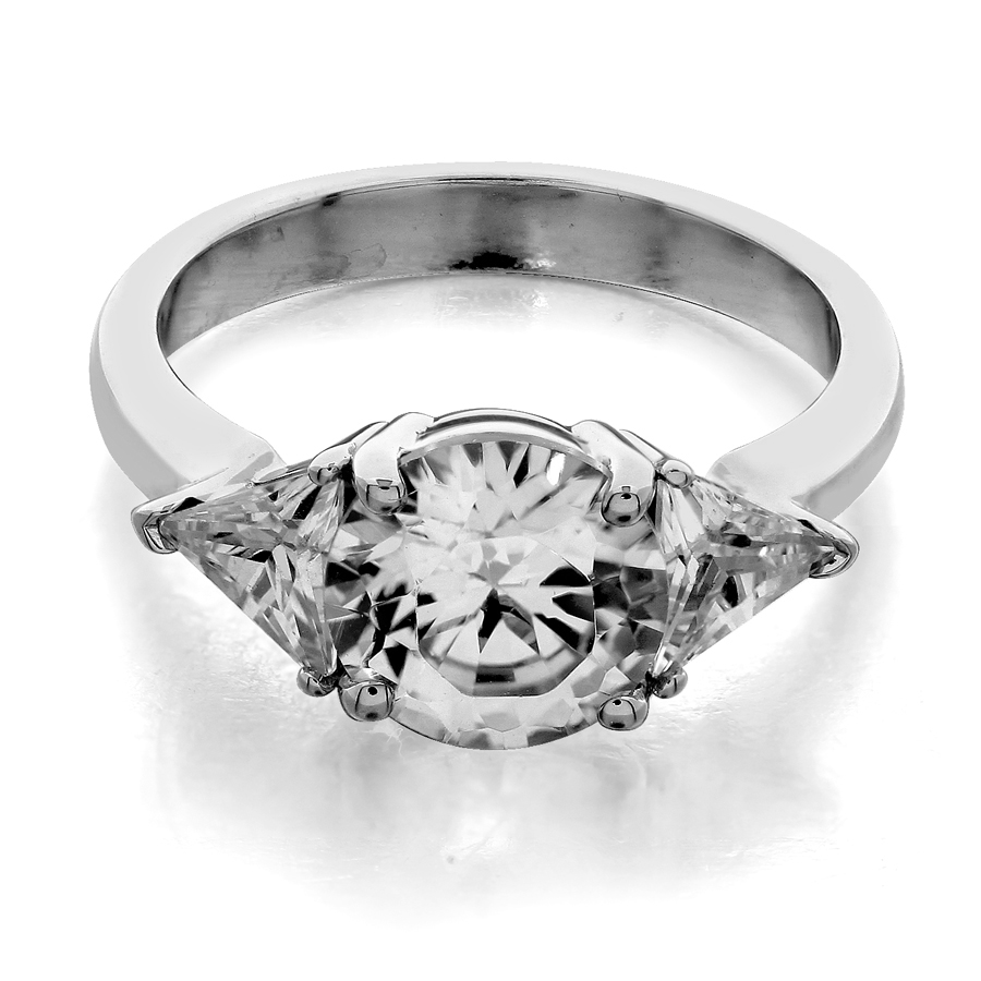 Three stone ring trilliant side stones round center