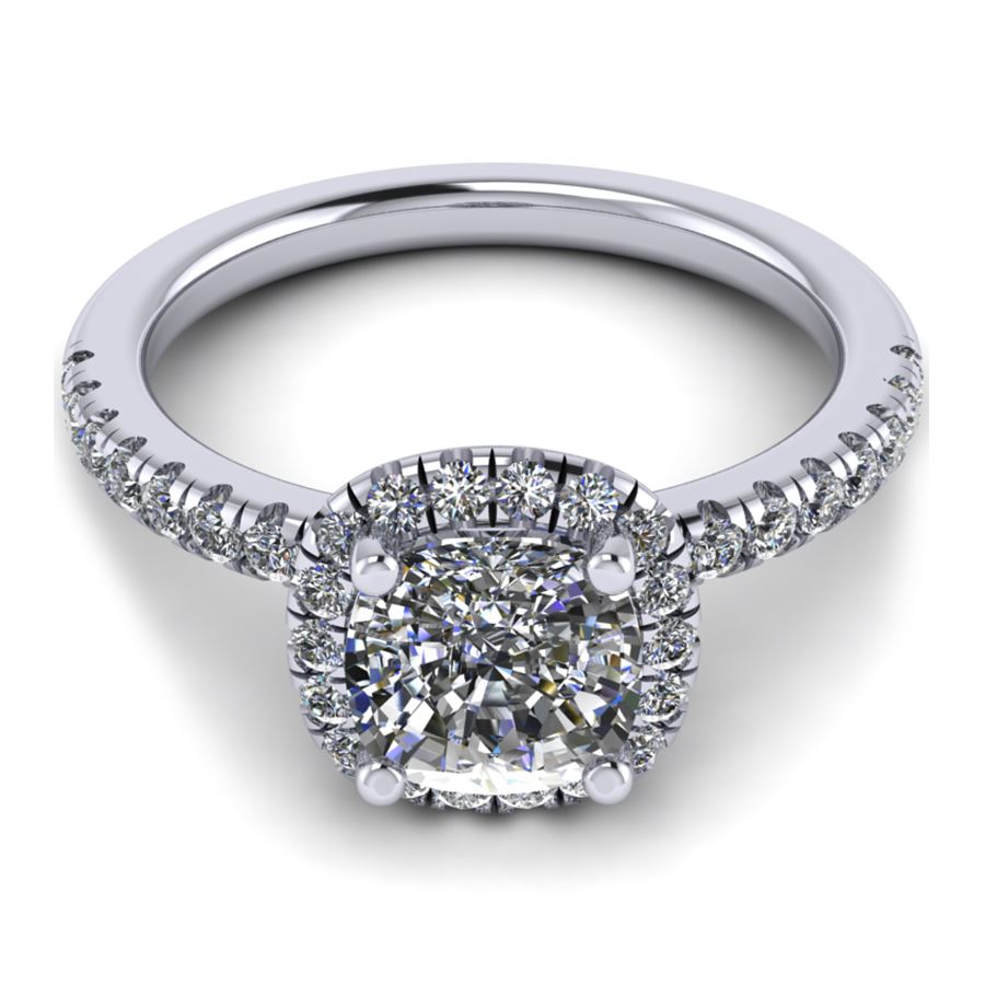 Split prong halo cushion outline cushion center