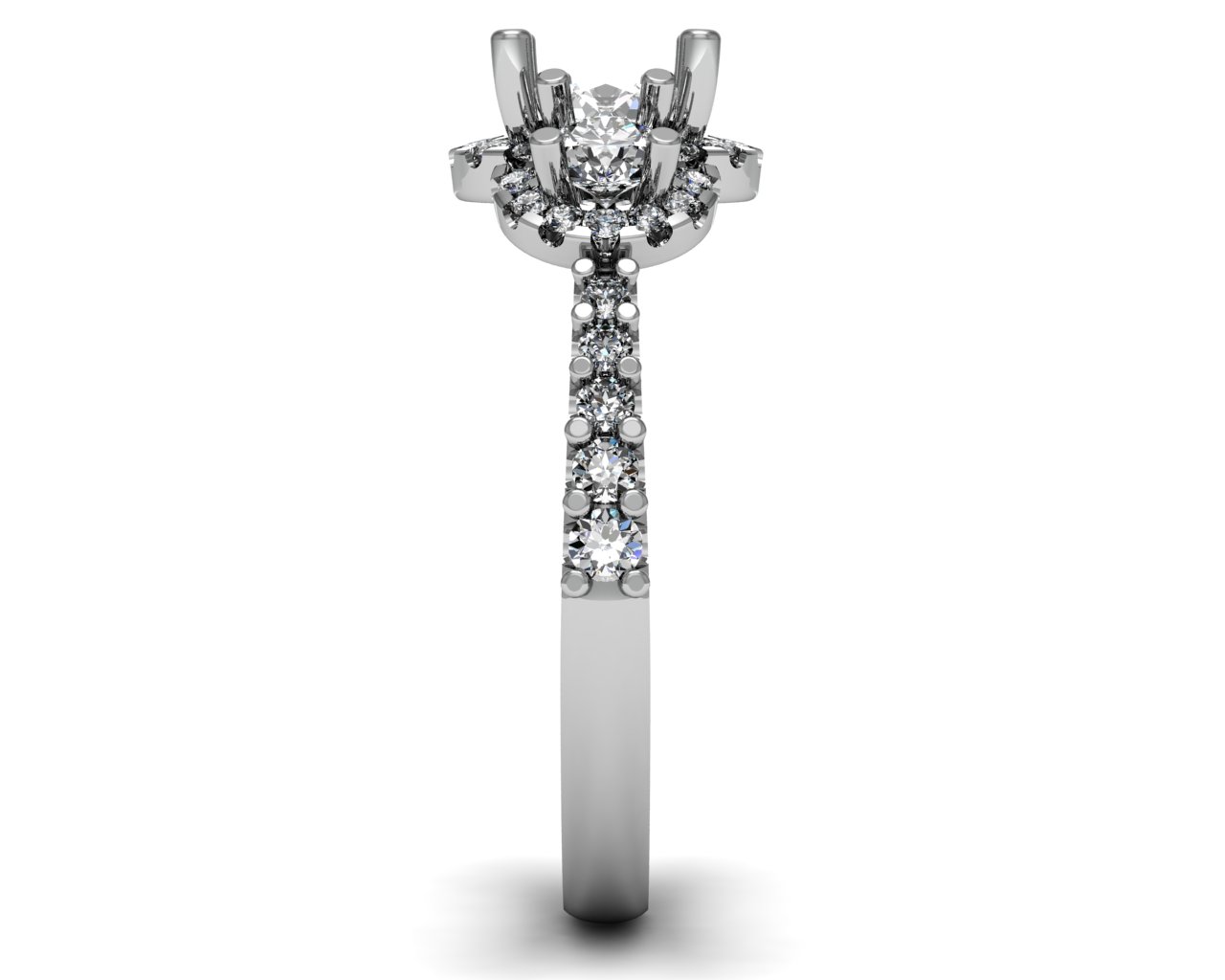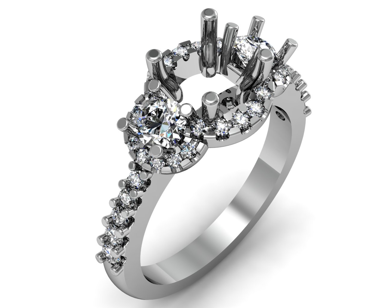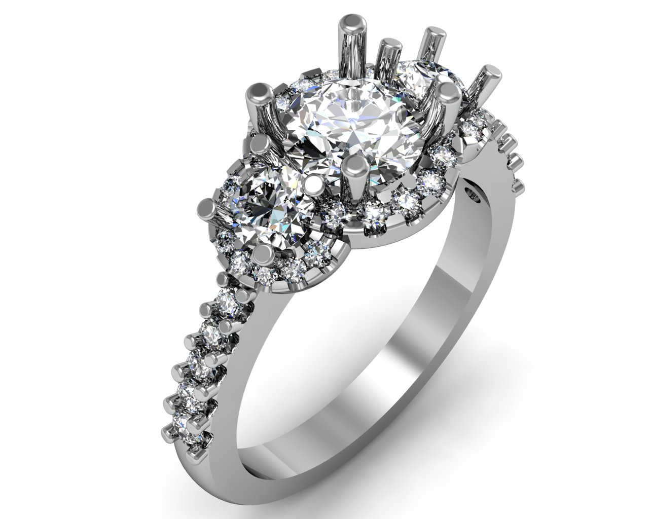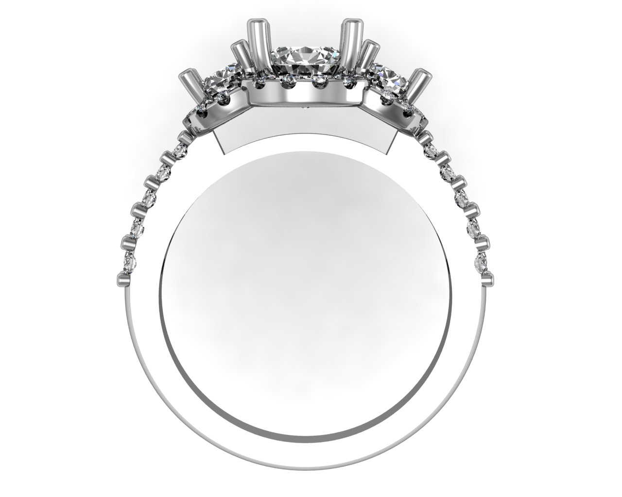 Three stone halo shared prong set 2