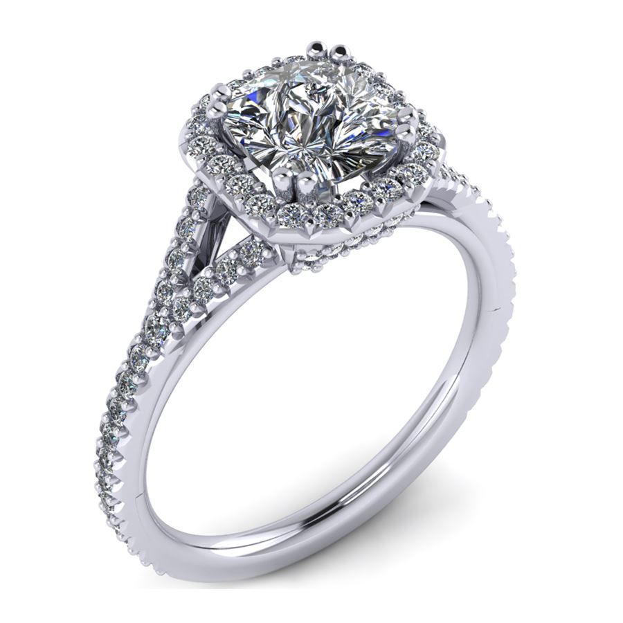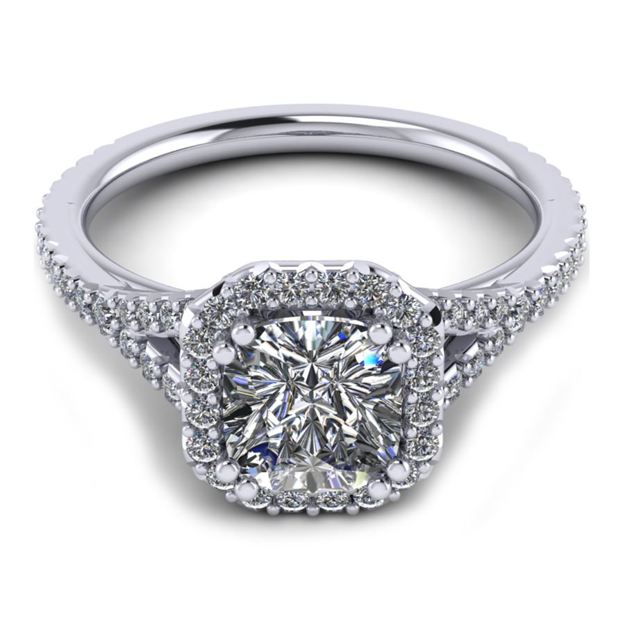 Halo ring split shank cushion center